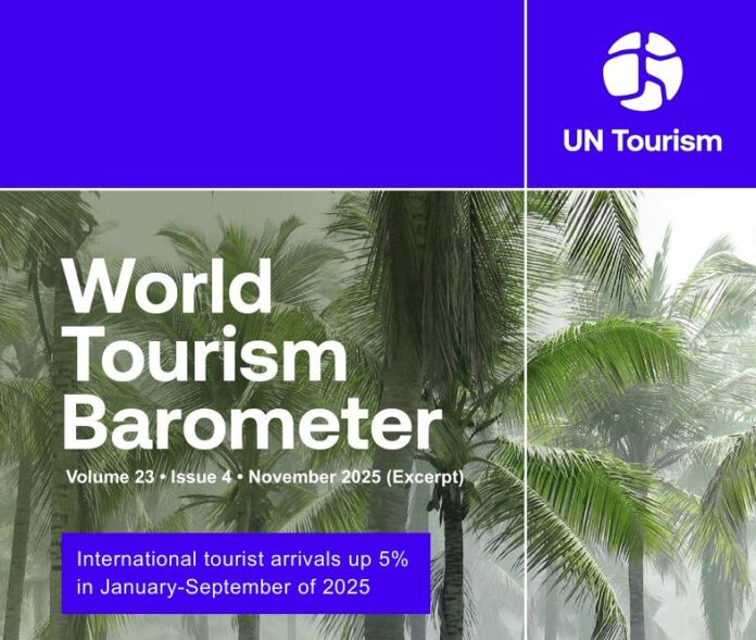 HomeNewsWorld Tourism Barometer : November 2025 News World Tourism Barometer : November 2025 2025-12-05 6082 Share FacebookTwitterPinterestWhatsApp According to the latest edition of the World Tourism Barometer, over 1.1 billion tourists travelled internationally between January and September this year, about 50 million more than in the same period of 2024. Read more Share FacebookTwitterPinterestWhatsApp Previous articleWorld Tourism Barometer : September 2025 RELATED ARTICLES News World Tourism Barometer : September 2025 2025-09-22 News UNDP Malaysia and Malaysian Government Delegation Visits Osaka and Gifu 2025-06-25 News World Tourism Barometer : May 2025 2025-06-03 - Advertisment - Most Popular World Tourism Barometer : September 2025 2025-09-22 The 19th UN Tourism Asia-Pacific Executive Training Programme on Tourism Policy and Strategy 2025-06-27 UNDP Malaysia and Malaysian Government Delegation Visits Osaka and Gifu 2025-06-25 UN Tourism 123rd Executive Council 2025-06-23 Load more